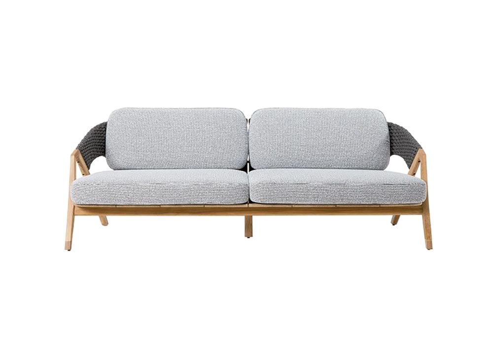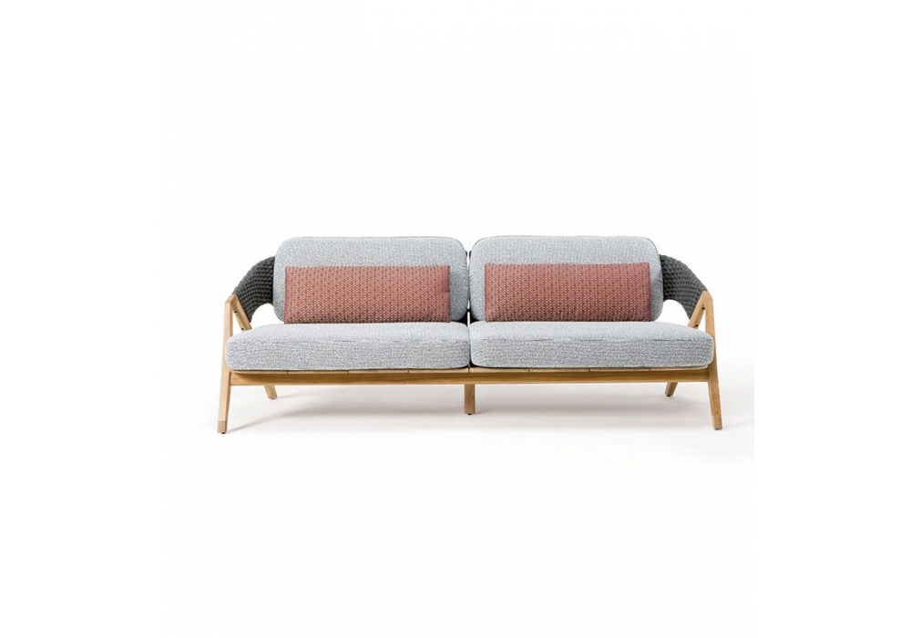 Knit firmato da Patrick Norguet per Ethimo è un divano tre posti strutturato in legno teak nella finitura naturale o decapata rivestito con intreccio in corda. La cuscinatura di seduta e schienale sono in tessuto di polipropilene. Knit è disponibile in differenti finiture e rivestimenti.