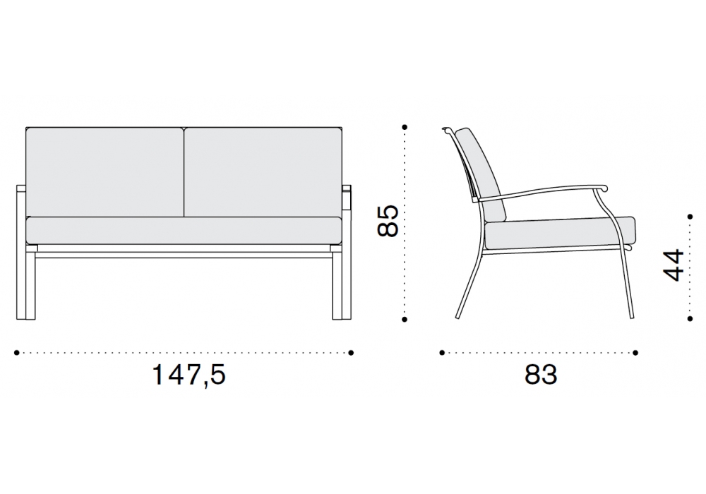 Elisir prodotto e firmato da Ethimo è un divano 2 posti con struttura portante in metallo verniciato. La cuscinatura è rivestita in tessuto acrilico idrorepellente. Elisir è disponibile in differenti finiture.