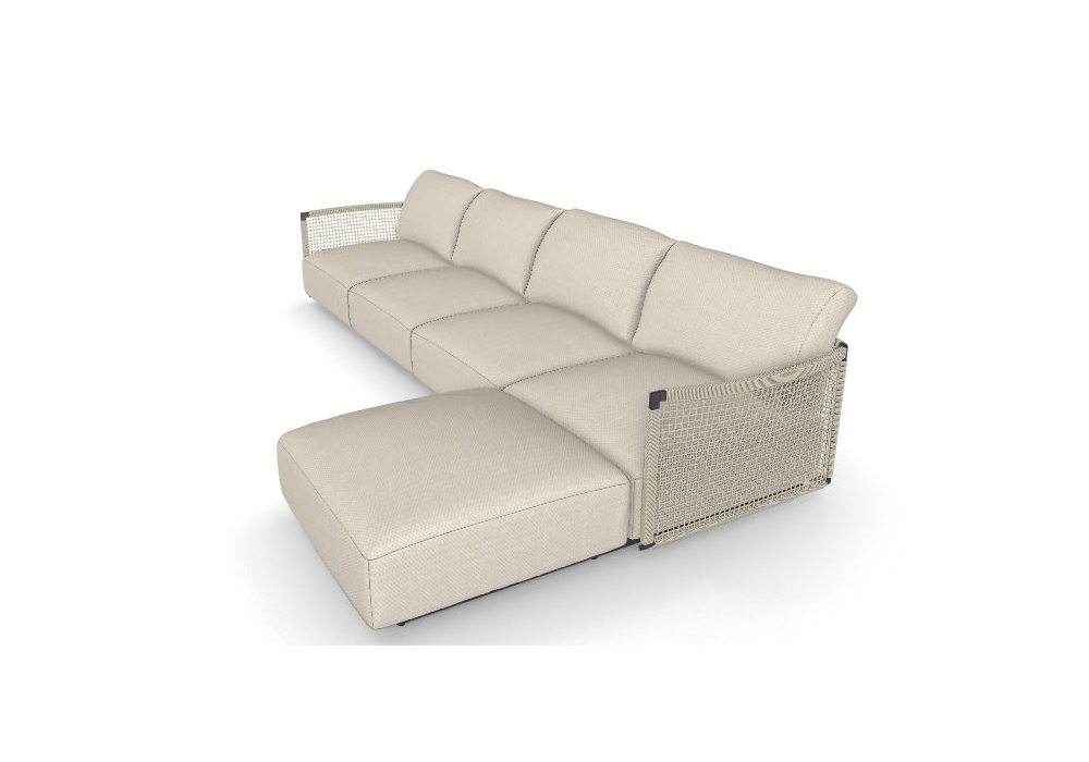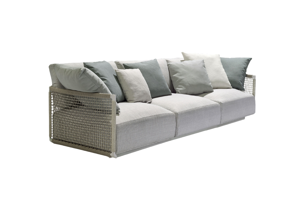 Nodi firmato da Yabu Pushelberg per Tribù è un divano modulare con telaio in acciaio inox verniciato a polvere in vari colori, rivestito da un intreccio aperto in Canax. L'imbottitura è ultra morbida con rivestimento in diversi tessuti e finiture. Il divano è disponibile in varie composizioni, alle quali si possono aggiungere ulteriori cuscini d'appoggio, su richiesta.
