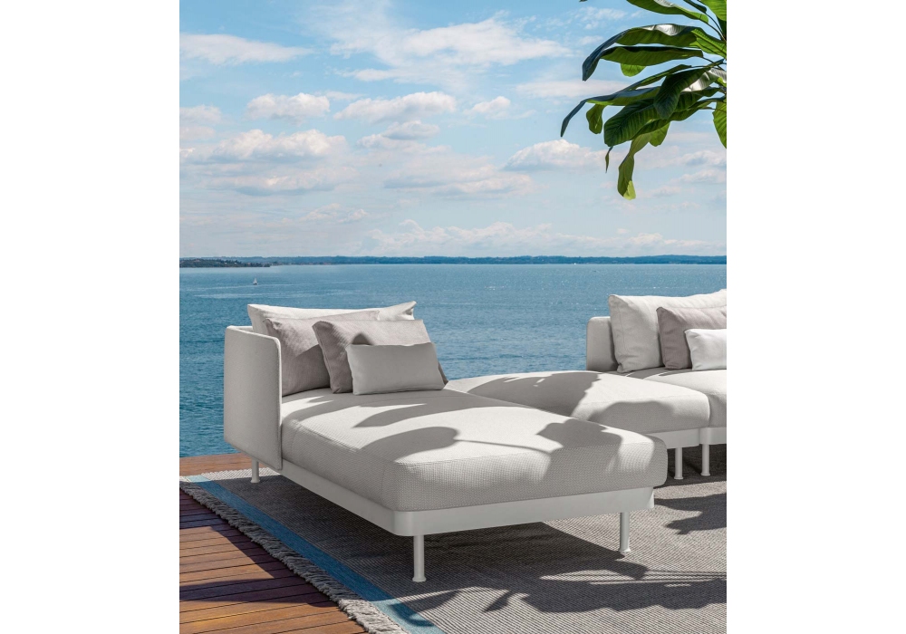 Slam firmato da Ludovica + Roberto Palomba per Talenti è un divano componibile per esterni, disponibile in diverse configurazioni. Struttura in alluminio verniciato a polvere. Schienale e cuscini sono sfoderabili e sono rivestiti con tessuti per esterni resistenti agli agenti atmosferici.