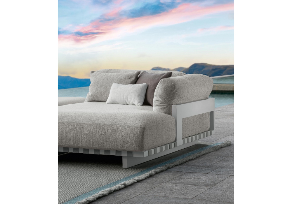 Argo Alu firmato da Ludovica + Roberto Palomba per Talenti è un divano componibile per esterno disponibile in diverse configurazioni. Struttura in alluminio verniciato a polvere e cinghie elastiche sintetiche perimetrali in tinta con la struttura. I cuscini sono sfoderabili e sono rivestiti con tessuti per esterni resistenti agli agenti atmosferici.