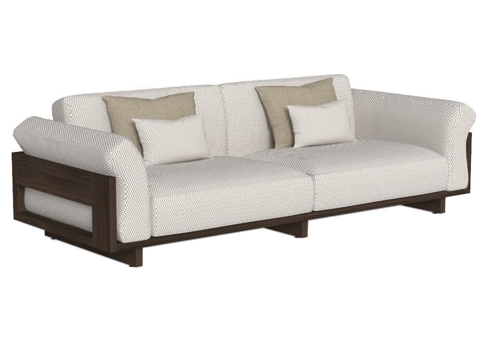 Argo Wood firmato da Ludovica + Roberto Palomba per Talenti è un divano da esterno con struttura in legno accoya nei colori palissandro o teak naturale. La seduta è supportata da cinghie elastiche sintetiche. I cuscini sono sfoderabili e sono rivestiti con tessuti per esterni resistenti agli agenti atmosferici.