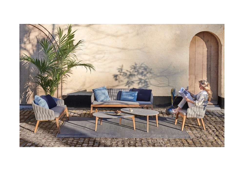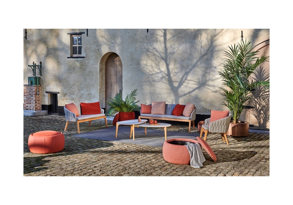 Calypso firmato da Kris Van Puyvelde per Royal Botania è un divano da esterno con cuscinatura in differenti finiture. Disponibile nella versione con schienale in tessuto sintetico.