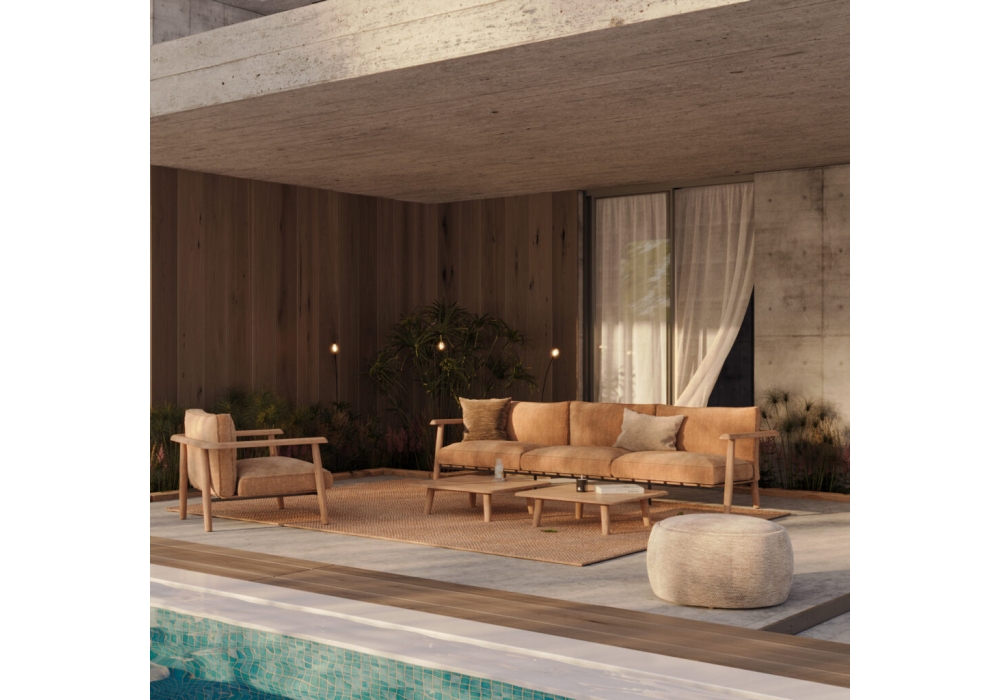 Mambo Lounge firmato da Kris Van Puyvelde per Royal Botania è un divano da esterno con struttura in teak e cuscini di seduta e schienale con rivestimento in differenti finiture. Disponibile in differenti dimensioni e combinazioni.