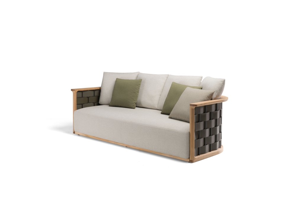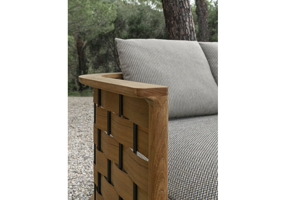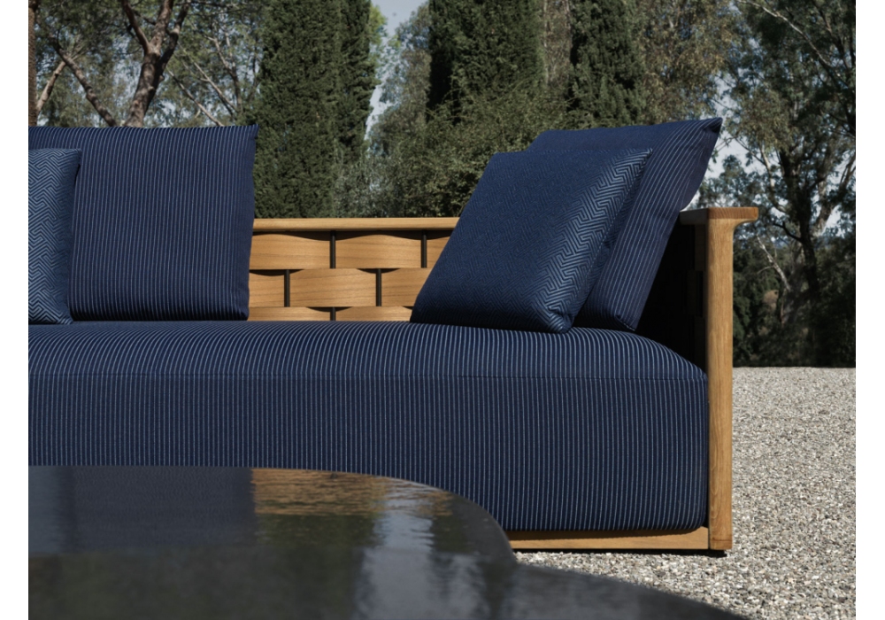 Palinfrasca firmato da Vincent Van Duysen per Molteni&C è un divano realizzato con struttura in massello di teak, scocca con intreccio a fasce in teak oppure in poliuretano EVA verde oliva. Imbottitura in poliuretano e rivestimento in tessuto. Disponibile in diversi modelli.