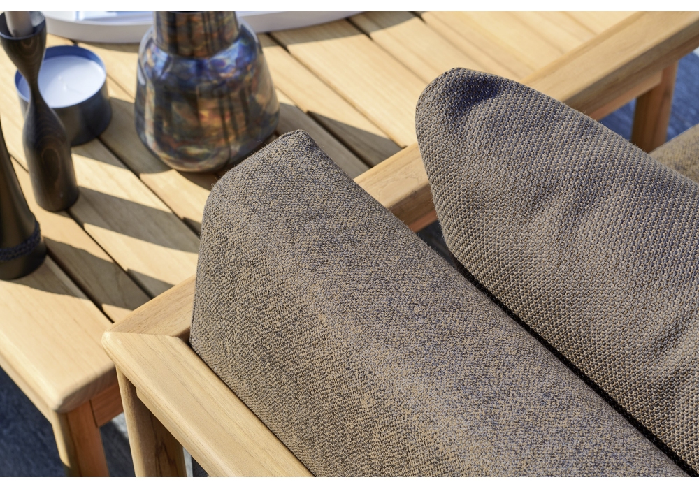 Bali firmato da Alessandro Dubini per Varaschin è un divano con struttura portante a vista in legno massello di teak di piantagione certificata. Sedute e schienali imbottiti con gomme Dryfeel da esterno. Disponibile in due dimensioni e con rivestimento in differenti finiture.