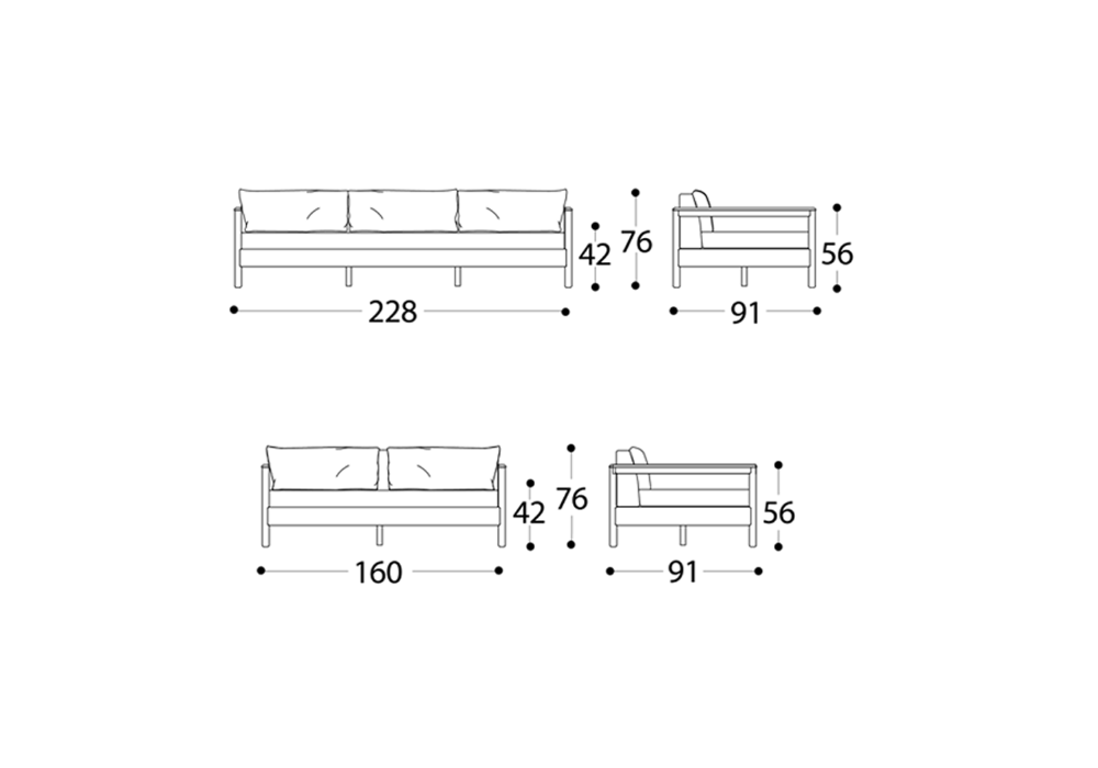 | Dimensioni | - 160 x 91 x H 76 cm; - 228 x 91 x H 76 cm. |