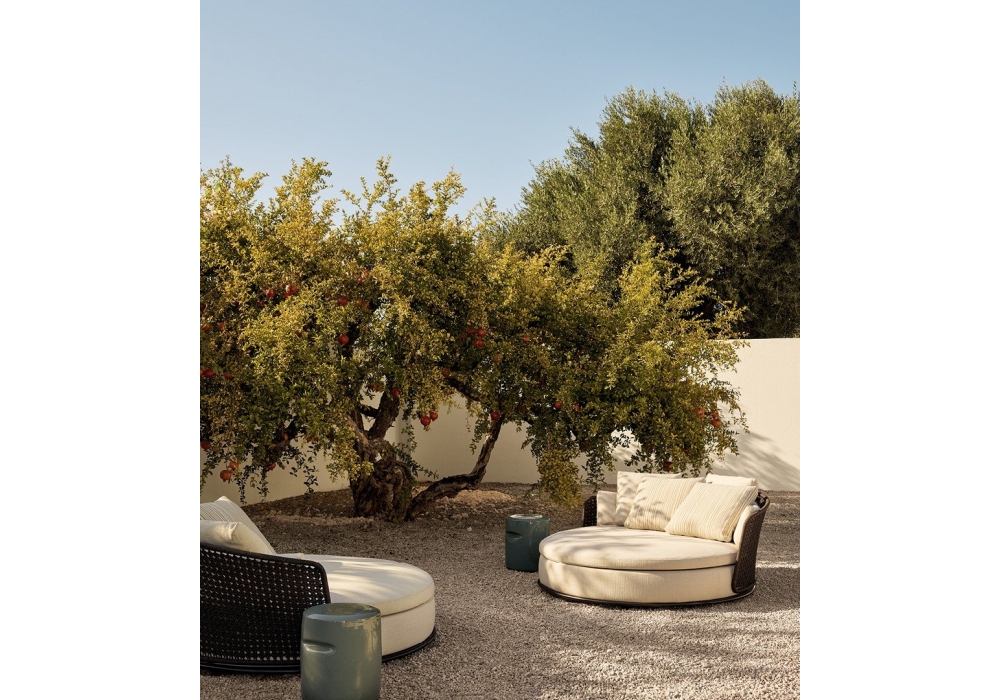 Soori firmato da Soo Chan per Poliform è un daybed con struttura schienale in tubolare di acciaio inox rivestita in fettuccia di polipropilene e schienale in fettuccia intrecciata. Basamento in tubolare di acciaio inox verniciato brown opaco. Piedini in materiale termoplastico. Cuscino seduta in poliuretano flessibile stampato. Cuscini schienale e comfort in poliestere riciclato PET. Prerivestimento in fibra di poliestere con cucitura termosaldata. Rivestimento sfoderabile in tessuto.
