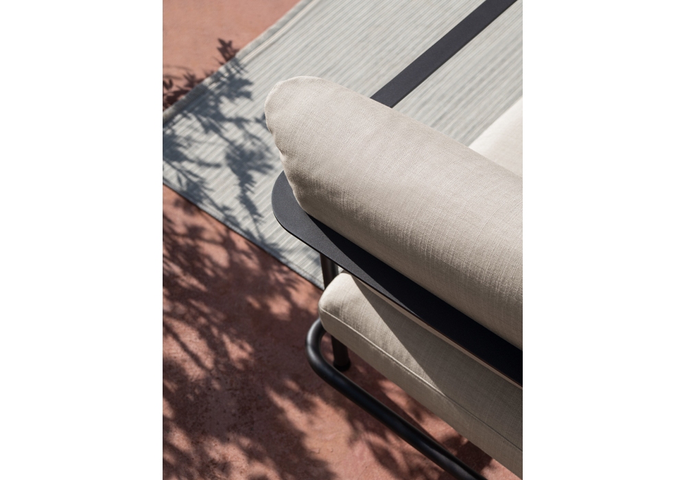 Elodie Outdoor firmato da Chiara Andreatti per Potocco è un divano da esterno con struttura in metallo tubolare verniciato goffrato in differenti finiture. Seduta e schienale sono imbottiti con schiuma poliuretanica ignifuga e rivestiti in svariati tessuti.