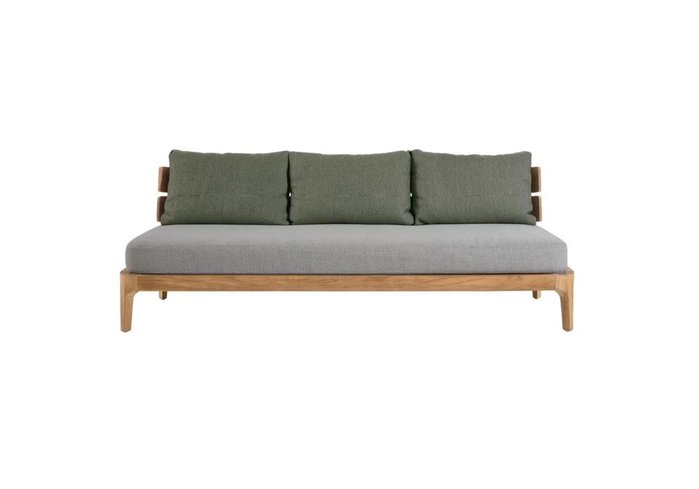 Mediterraneo firmato da Francesco Meda per Gervasoni è un divano a tre posti realizzato con struttura in teak e rivestimento sfoderabile in tessuto.