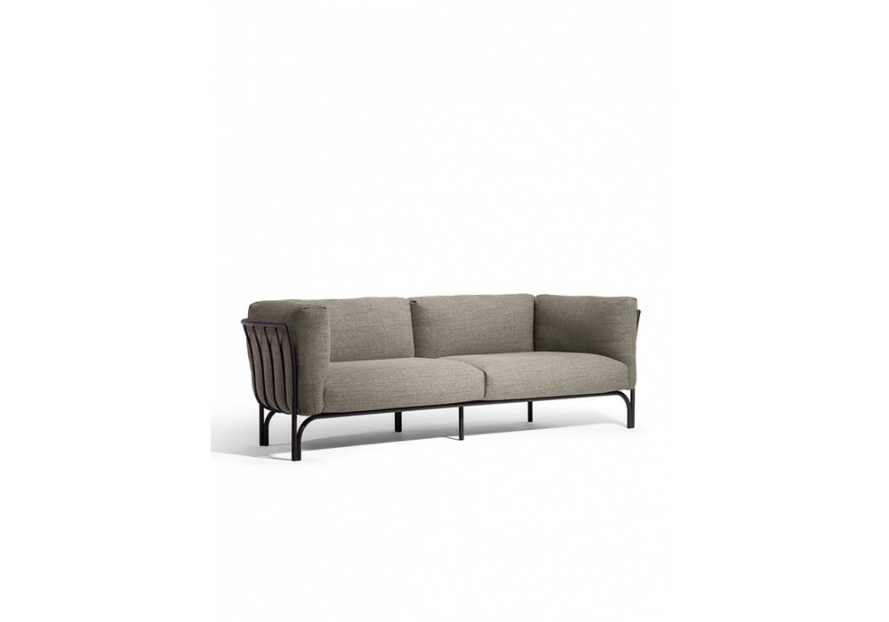 Mirabell firmato da GamFratesi per Poltrona Frau è un divano da esterni con struttura interamente realizzata in allumunio verniciato a polvere goffrata color basalto. I cuscini seduta sono realizzati in poliuretano a celle aperte con di erente densità all’interno di foderine in polipropilene mentre schienale e braccioli sono fi bra di poliesterein fiocco che simula la piuma e foderina in poliestere idrorepellente. Mirabell è disponibile in differenti dimensioni e rivestimenti.