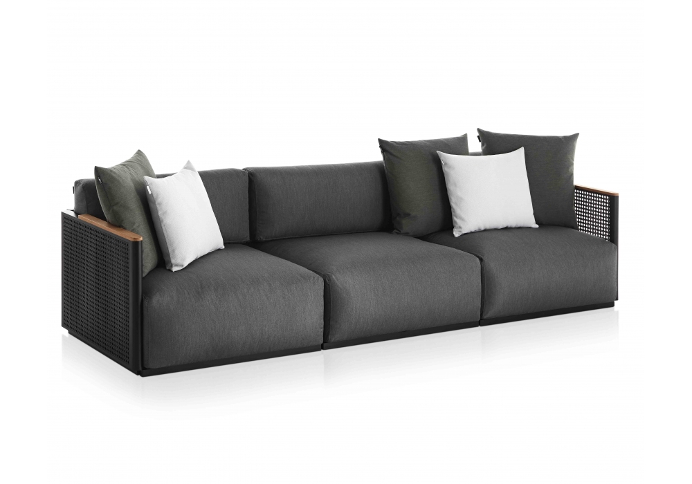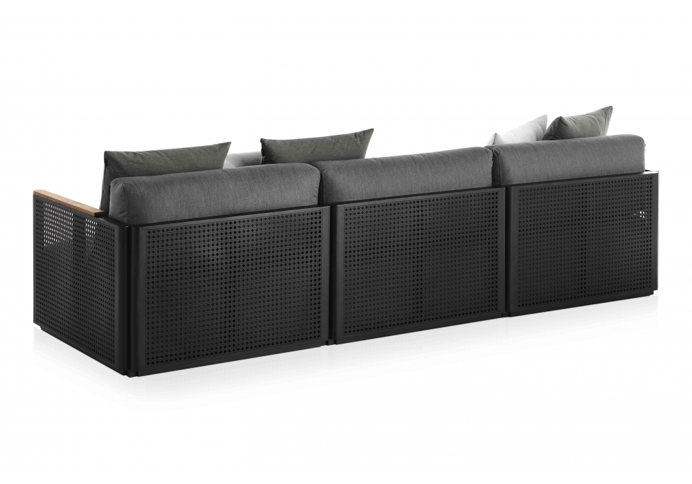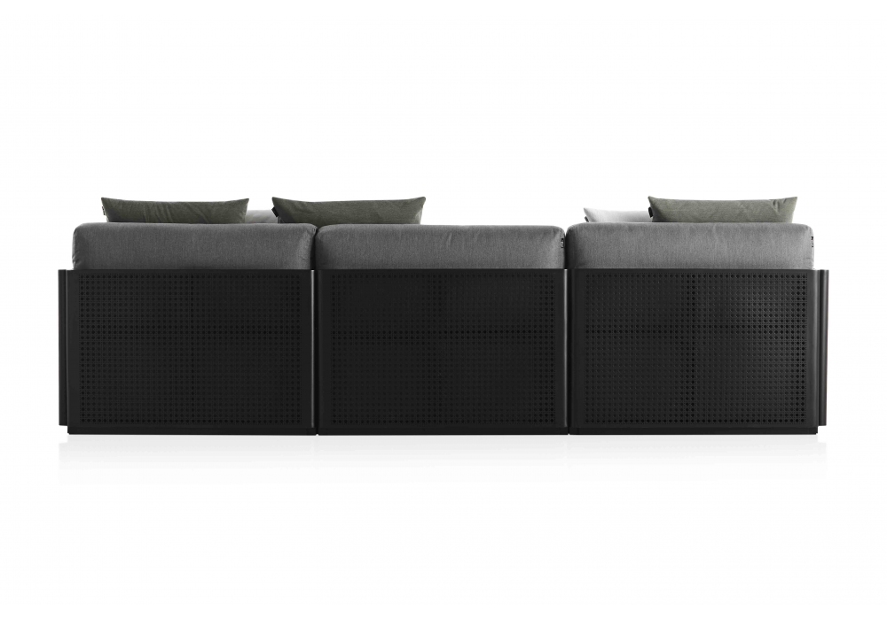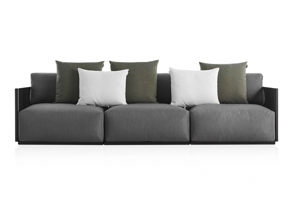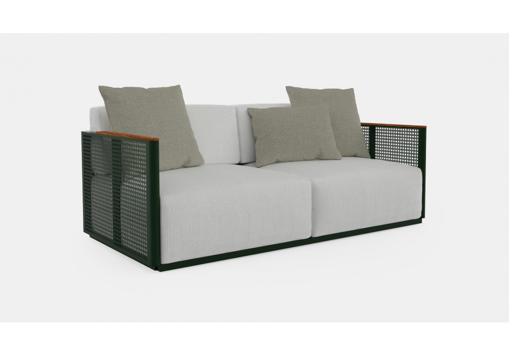 Bosc firmato da Made Studio per Gandia Blasco è un divano di design realizzato con una struttura in alluminio saldato e lamiera microforata. Cuscino in gommapiuma poliuretanica rivestito in tessuto idrorepellente. Disponibile in diverse finiture e dimensioni.