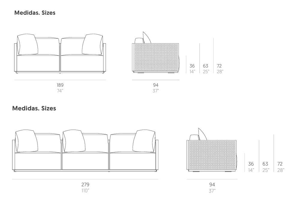 | Dimensioni | 189 x 94 x H 72 cm; 279 x 94 x H 72 cm. |