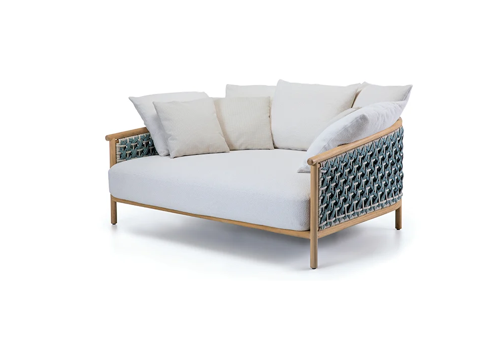 Patio firmato da Zanellato / Bortotto per Ethimo è un Daybed con struttura in teak naturale e schienale con tessuto intrecciato. Cuscini seduta e schienale in polipropilene.