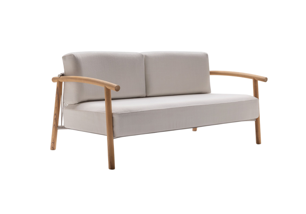 Kasumi firmato da Mist-o per Living Divani è un divanetto con struttura portante in acciaio inox satinato opaco; fianchi realizzati in massello di Teak con schienale incordato in corda sintetica in differenti finiture. Il rivestimento della cuscinatura è realizzato in differenti tessuti.