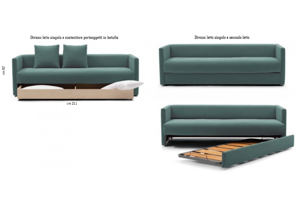 Fefè firmato da Campeggi è un divano davvero facile da trasformare in un letto. Disponibile in 2 diverse versioni: con 2° letto addizionale o con cassettone portaoggetti in legno. Imbottitura in poliuretano espanso e fibra poliestere con rivestimento sfoderabile. Materasso in poliuretano.
