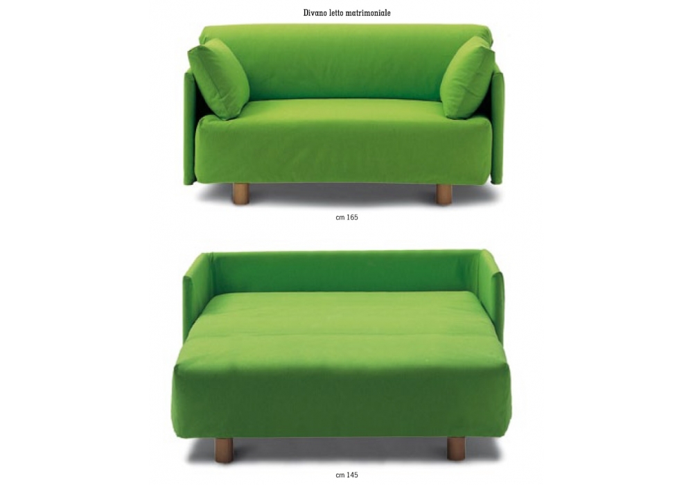 Woody firmato da Campeggi è un divano letto facile e veloce da trasformare. Struttura in acciaio, doghe in legno di faggio stratificato con ammortizzatori in resina. Trapunta in ovatta di poliestere separabile dal rivestimento, imbottitura in poliuretano espanso. Materasso in poliuretano ad alta densità.