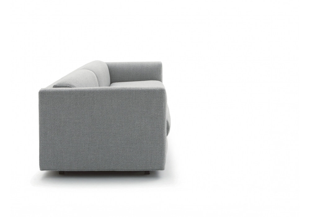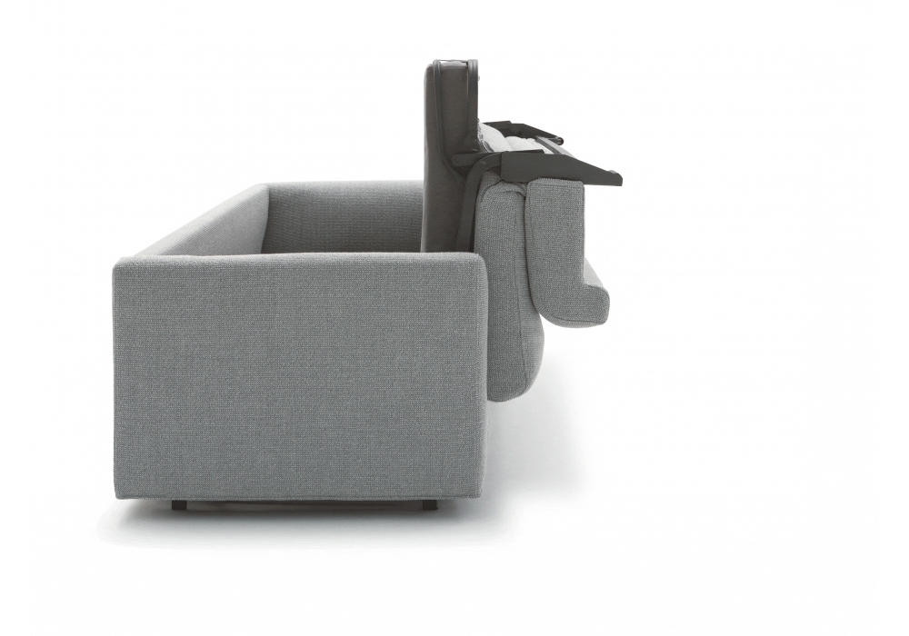 Di-Tra-Verso firmato da Campeggi è un divano letto con struttura in legno e molleggio elastico in cinghie di gomma e lattice naturale. Dotato di meccanismo letto in acciaio verniciato a polveri epossidiche, con apertura sincronizzata tramite ribaltamento della spalliera e rete in maglia di acciaio elettrosaldata. Imbottitura in poliuretano espanso a densità differenziata e ovatta in poliestere. Materasso in espanso, con doppia densità, sfoderabile, traspirante, ortopedico e anatomico. Rivestimento completamente sfoderabile.