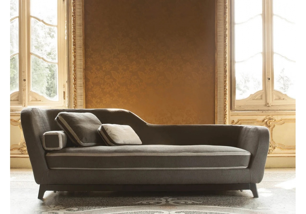 Jeremie Evo firmato da Eric Berthes per Milano Bedding è un divano letto rivestito in tessuto, un complemento d'arredo versatile che unisce eleganza e funzionalità, ispirandosi al raffinato stile Art Déco. Rappresenta una scelta ideale per chi desidera un arredamento che sposi lo stile classico con quello contemporaneo. Il divano letto Jeremie Evo si distingue per la sua particolare forma a dormeuse, adattandosi perfettamente a diverse esigenze di spazio. Realizzato con un materiale di alta qualità, combina tessuti pregiati di Designers Guild con una solida struttura in legno di faggio in finitura wengè. Rete a maglia di acciaio elettrosaldata, fissata alla struttura tramite molle. Materasso incluso. Cuscini decorativi non inclusi.