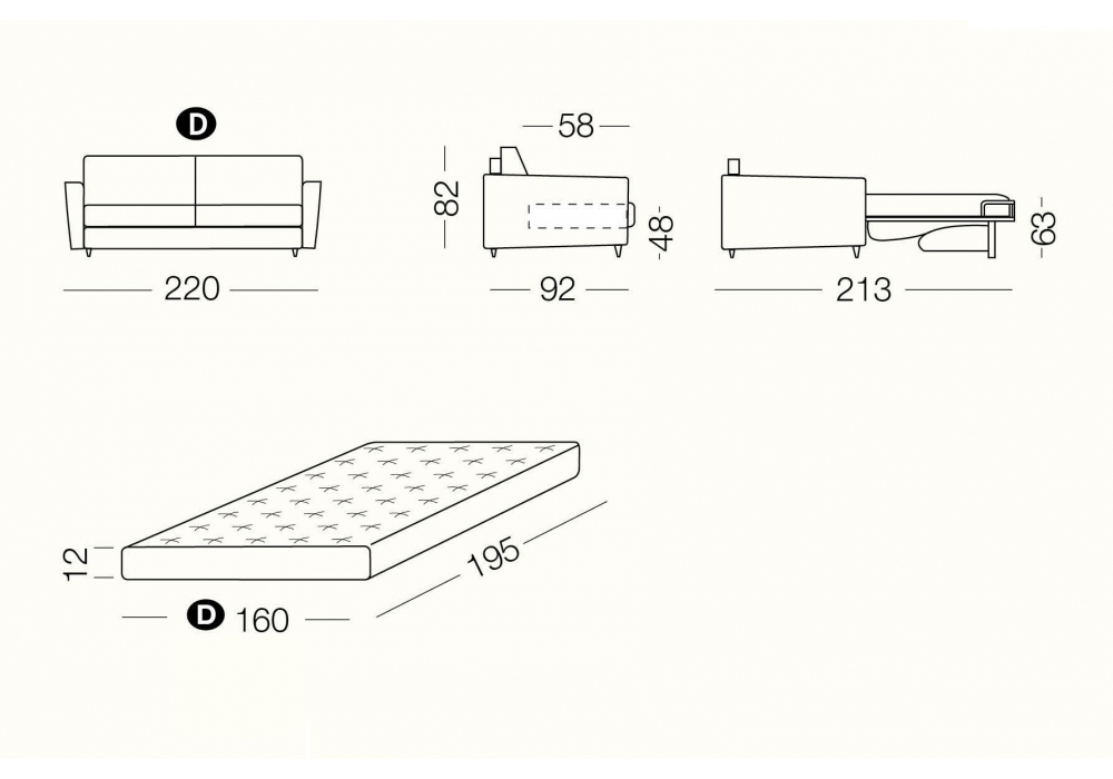| Dimensioni materasso | 160 x 195 x H 12 cm |