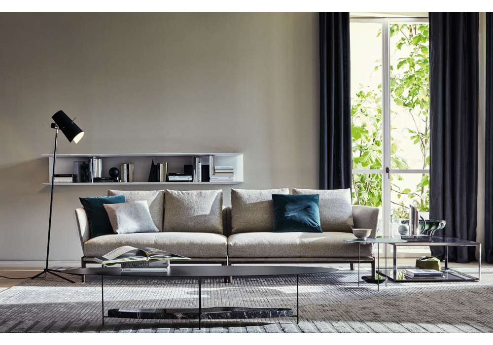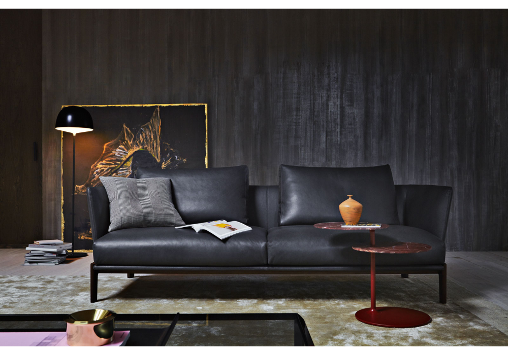 Chelsea firmato da Rodolfo Dordoni per Molteni&C è divano realizzato con basamento in legno massello tinto, imbottitura in poliuretano espanso ad alta portanza a densità variabile e rivestimento in tessuto o in pelle.