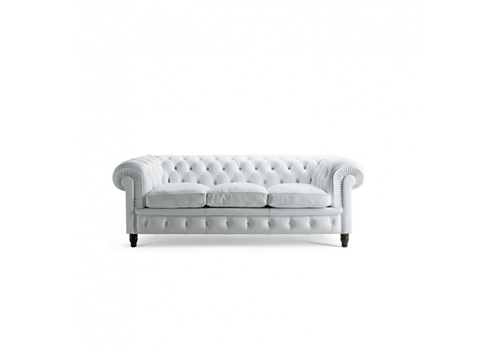 Chester, firmato da Poltrona Frau, è un divano con struttura portante in faggio stagionato e cuscino di seduta in piuma d'oca. Lo schienale e i braccioli presentano un disegno capitonné realizzato a mano. Lo schienale esterno è rifinito con una fila di chiodini rivestiti in pelle. I piedi sono disponibili nelle seguenti tipologia: versione sferica (6 cm) o alta (12 cm) in faggio tinto noce scuro o laccato nero; piedi in legno (13,7 cm) rivestiti in pelle.