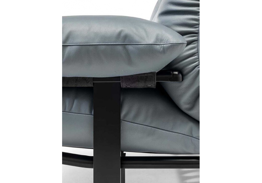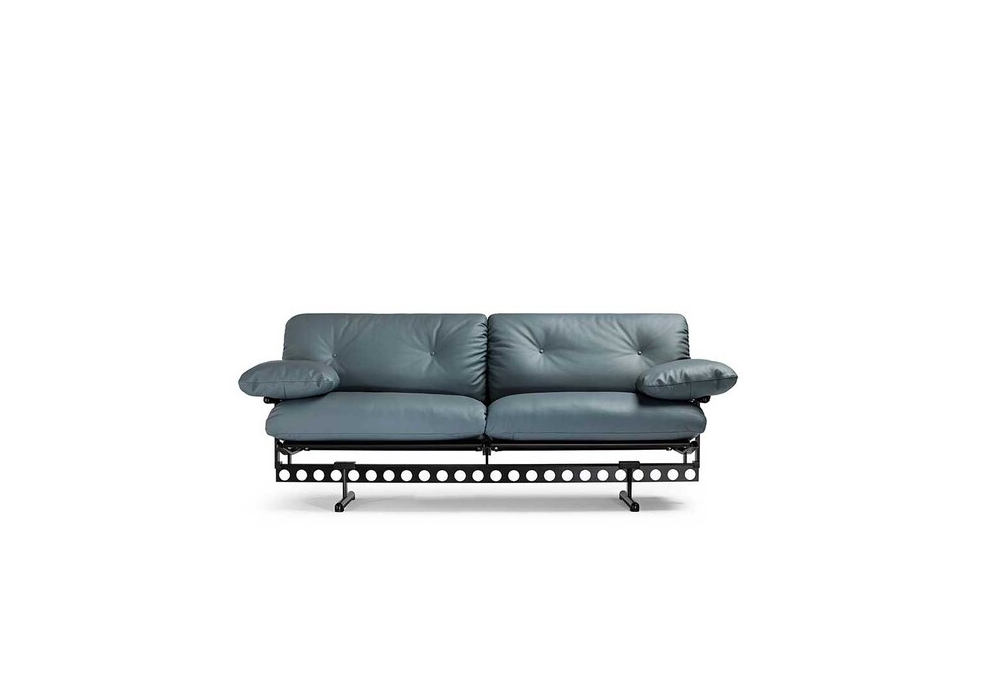 Ouverture firmato da Pierluigi Cerri per Poltrona Frau è un divano con struttura in profilati d’acciaio color grigio alluminio metallizzato che poggia su una trave traforata in acciaio. I piedi scorrono lungo la trave, il relativo posizionamento è dunque flessibile. Molleggio del sedile ottenuto con una sospensione elastica in tela di nylon e gomma vulcanizzata. I cuscini sedile, schienale e braccioli sono imbottiti in piuma d’oca con un inserto stabilizzante in poliuretano espanso. Il rivestimento è disponibile in Pelle Frau®.
