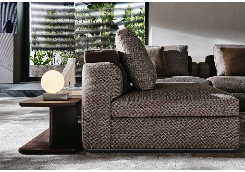 Albert firmato da Vincent Van Duysen per Molteni&C è un divano modulare con basamento in peltro e rivestimento completamente sfoderabile in tessuto o pelle.