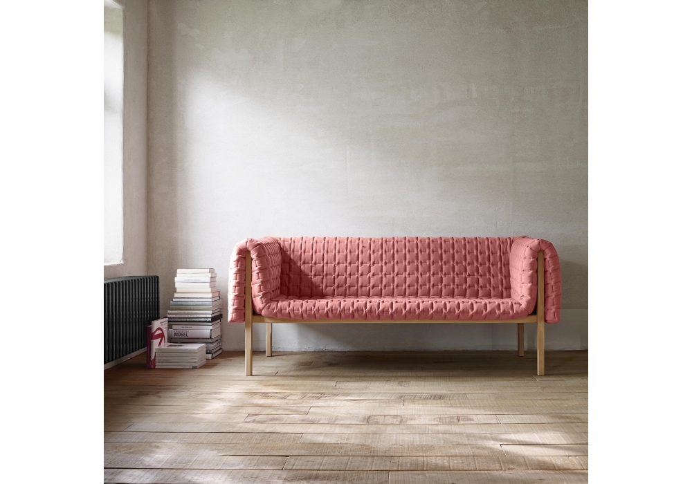 Ruché (stoffa arricciata o plissettata che serve da ornamento per abiti) firmata da Inga Sempé associa per Ligne Roset l'inusuale e la tradizione. L'inusuale con questa struttura in legno massello, e la grande tradizione: la trapunta, centro del suo know-how. Slanciato e sottile, Ruché è anche accogliente e morbido. Aggiungiamo che la concezione stessa di Ruché permette di creare sedie che associano comfort e facile collocazione: la sua profondità è di soli 85 cm, la lunghezza varia da 170 a 200 cm, ideale per piccoli appartamenti. Infine, l'altezza della seduta (45 cm) sedurrà tutti i clienti, compresi quelli che rifuggono sedute troppo basse.