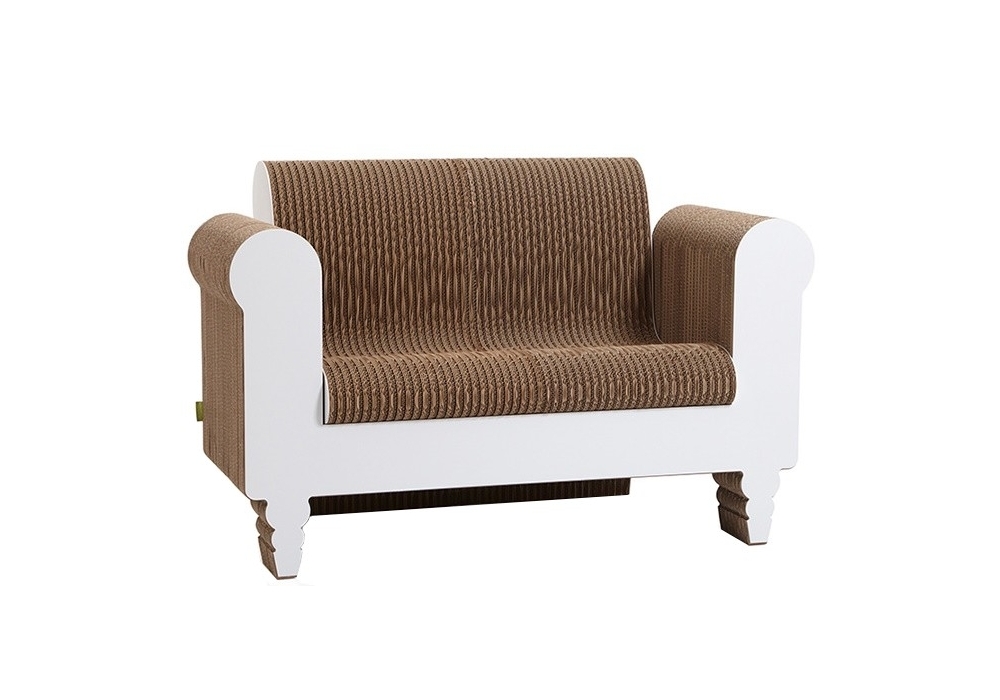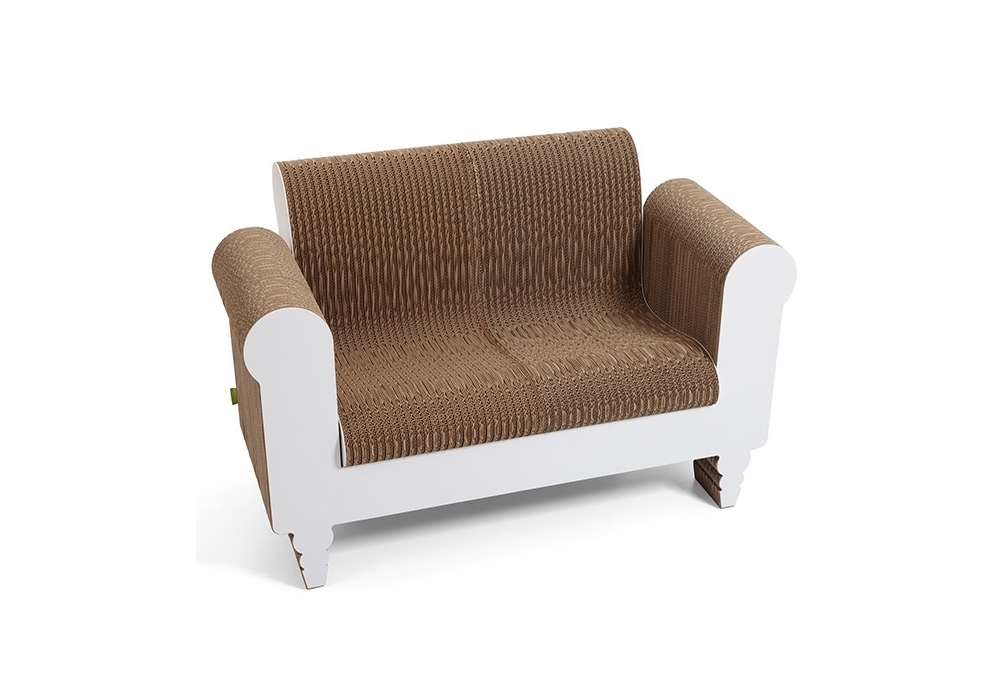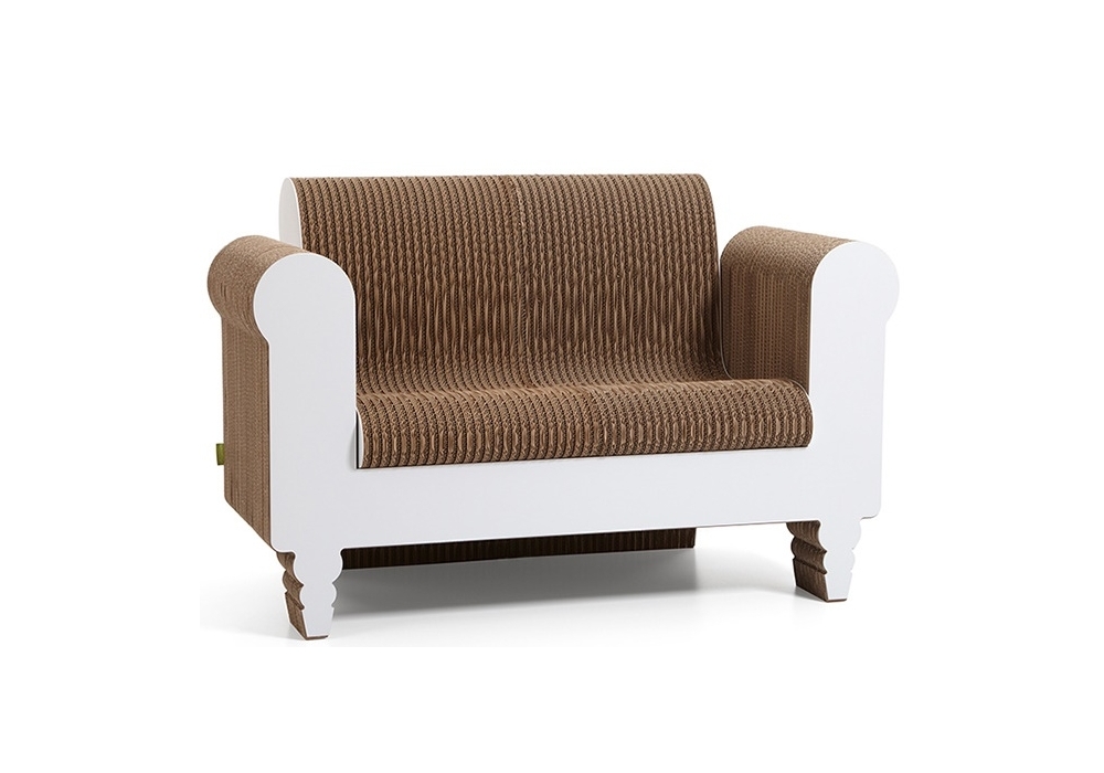 Clorindo di Kubedesign è un divano in cartone tridimensionale. Disponibile con finitura in materiale rigido antiurto nei colori bianco, nero e rosso.