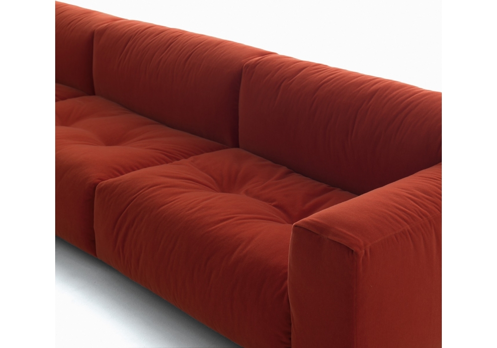 Softwall firmata da Piero Lissoni per Living Divani è una rivisitazione di Wall che mantiene le misure e i volumi del progetto originario, ma ne smussa gli angoli e ammorbidisce lo spirito. Una presenza capace di suggerire con eleganza calore e familiarità. Divano fisso o componibile e poltrona. Struttura base in acciaio verniciato con molleggio a nastri elastici in caucciù rivestito e pannello in feltro a protezione del cuscino di seduta. Braccioli e schienali con telaio in acciaio e cinghie elastiche, inserito in una struttura in poliuretano espanso schiumato a freddo rivestiti con un materassino in piuma d’oca lavata e sterilizzata racchiusa in settori separati. Cuscini di seduta con struttura preformata in poliuretano espanso a densità differenziata, rivestiti con materassino trapuntato in piuma d’oca lavata e sterilizzata racchiusa in settori separati. Piedini in alluminio anodizzato nel colore nero, regolabili a 3 altezze da 7cm a 10cm. A richiesta staffe in acciaio cromato per tutti gli elementi. Rivestimento in tessuto o pelle, entrambi interamente sfoderabili tramite cerniere e velcro a strappo. Profondità di seduta 67cm.