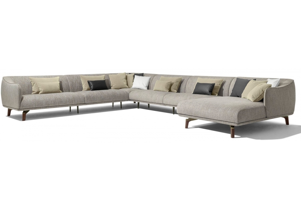 Drive firmata Carlo Colombo per Giorgetti è una collezione di divani. Base in noce canaletto con inserti verniciati color bronzo effetto naturale. Rivestimento in tessuto o pelle, con profilo sempre in pelle con colore a scelta, non sfoderabile.