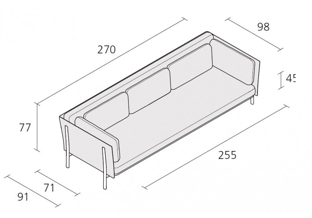 882 Twelve 3 firmato da PearsonLloyd per Alias è un divano a tre posti con gambe in pressofusione di alluminio e struttura in acciaio. Cuscino seduta, schienale e braccioli in poliuretano rivestito in tessuto Kvadrat® o Pelle Frau®.