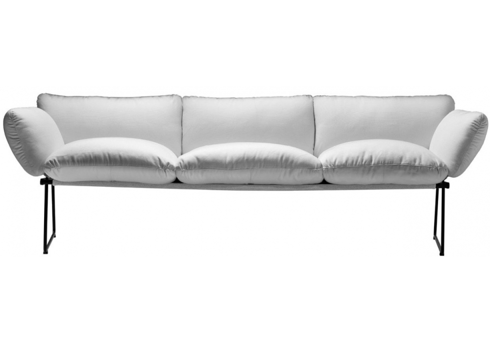 Elisa firmato da Enzo Mari per Driade è un divano per esterni con struttura in tondino di acciaio verniciato a polveri epossidiche nel colore black-brown. Rivestimento in tessuto per indoor e outdoor. Disponibile in due dimensioni.
