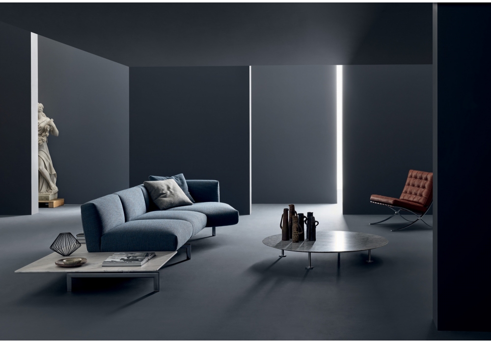 Avio firmato da Piero Lissoni per Knoll è un sistema di divani modulari con struttura in acciaio verniciato o cromato. Rivestimento in tessuto o pelle in varie finiture. Il piano del tavolino è realizzato in marmo satinato o in legno di castagno.