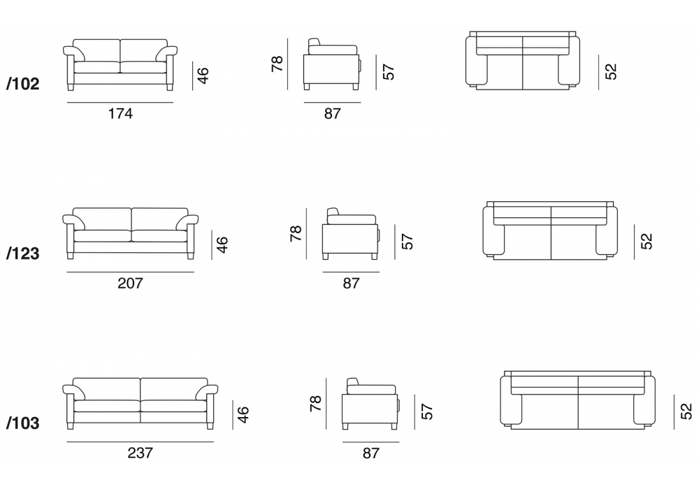 | Dimensioni | 174 x 87 x H 78 cm; 207 x 87 x H 78 cm; 237 x 87 x H 78 cm. |