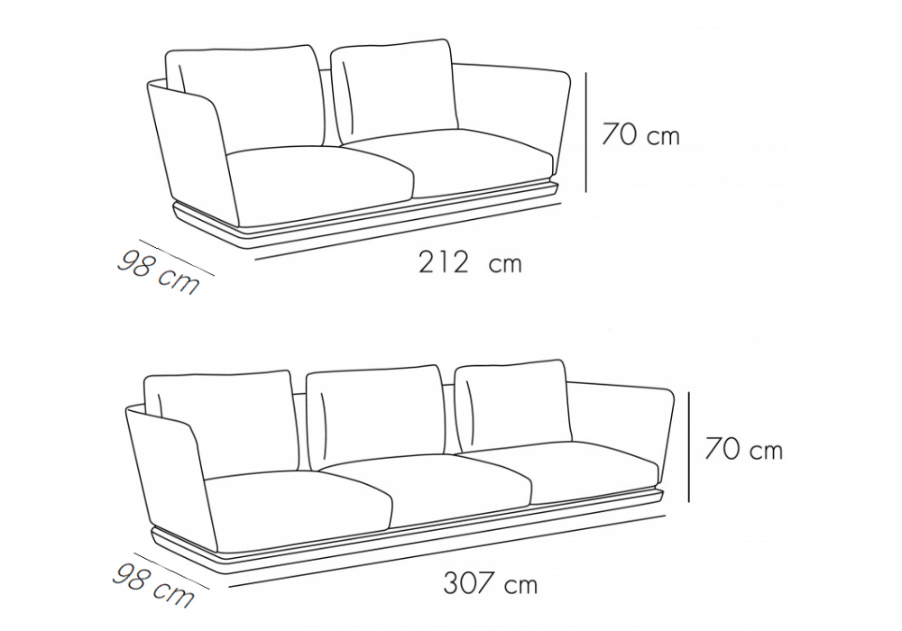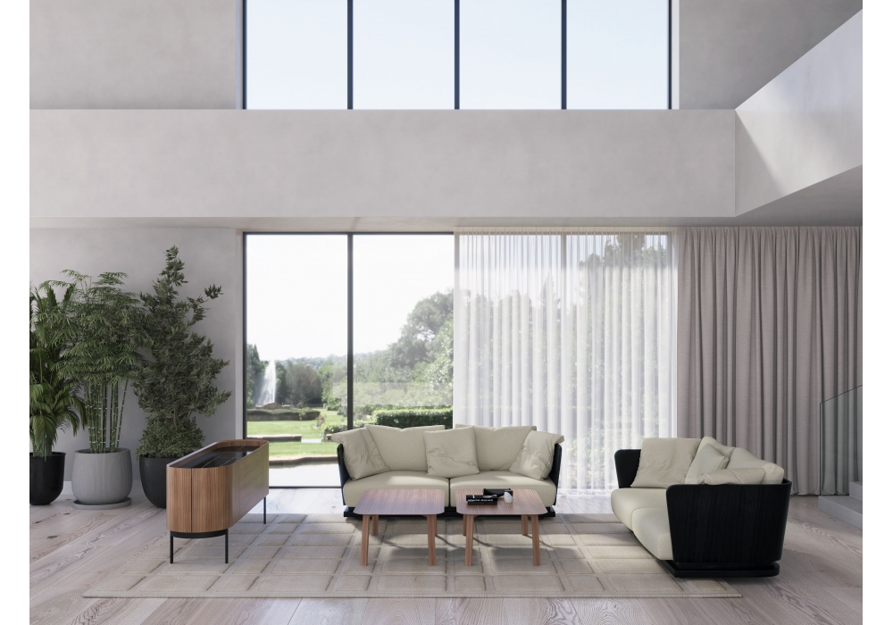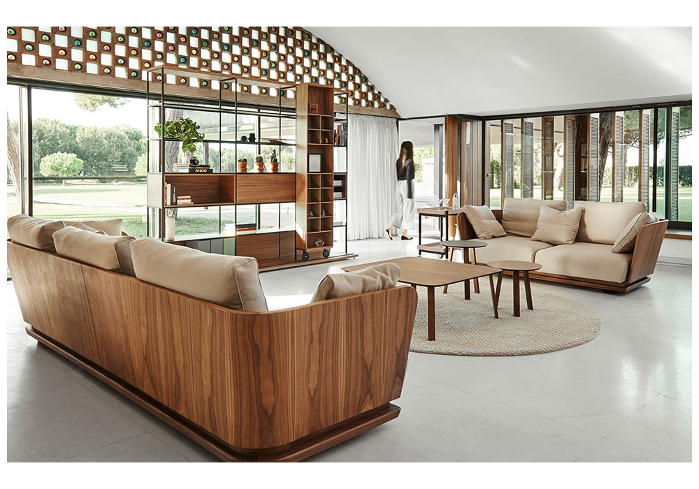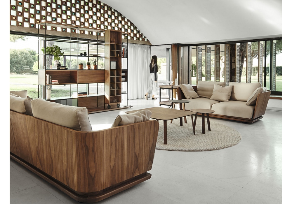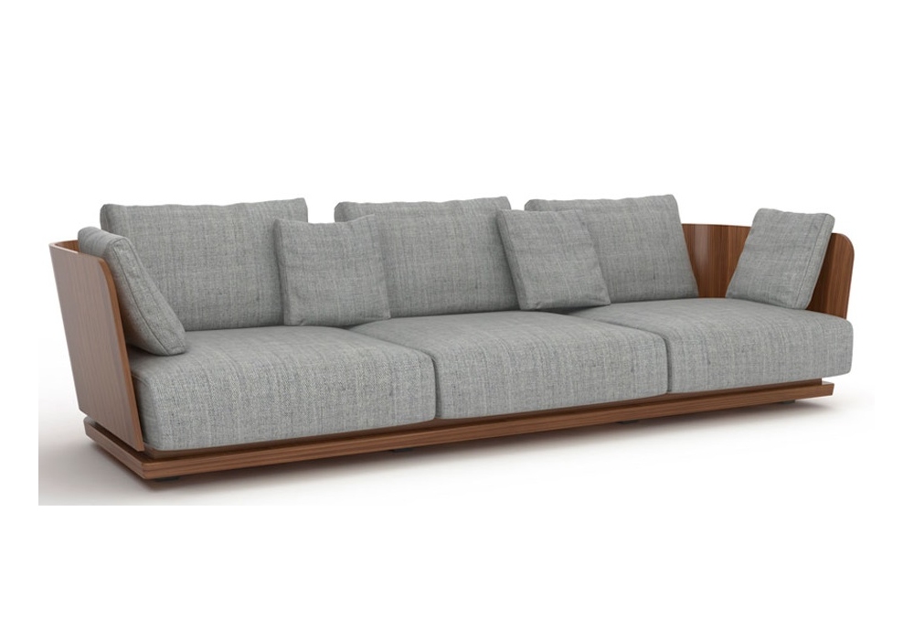 A. Cortese firmato da Monica Armani per Punt è un divano con schienale in multistrato curvato in legno di noce o rovere impiallacciato con rivestimento in tessuto o pelle e zoccolo in legno massello con supporti metallici regolabili. Cuscini seduta con interno in poliuretano espanso e fibra poliestere ignifuga e cuscini ausiliari in piuma d’oca e anatra lavata e sterilizzata con fibra cava e silicone 100% con trattamento antiacaro. Disponibile in differenti rivestimenti e dimensioni.