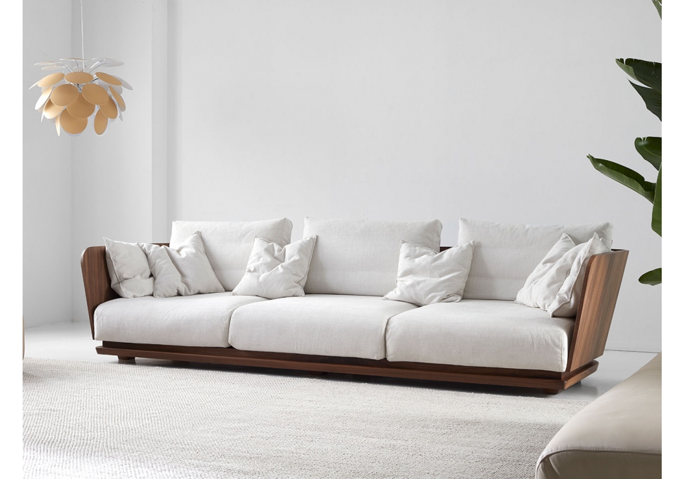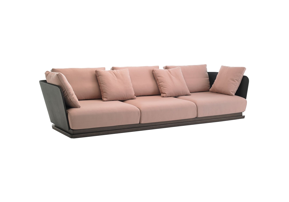 Amor Cortese firmato da Monica Armani per Punt è un divano con schienale in multistrato curvato in legno di noce o rovere impiallacciato con rivestimento in tessuto o pelle e zoccolo in legno massello con supporti metallici regolabili. Cuscini seduta con interno in poliuretano espanso e fibra poliestere ignifuga e cuscini ausiliari in piuma d’oca e anatra lavata e sterilizzata con fibra cava e silicone 100% con trattamento antiacaro. Disponibile in differenti rivestimenti e dimensioni.