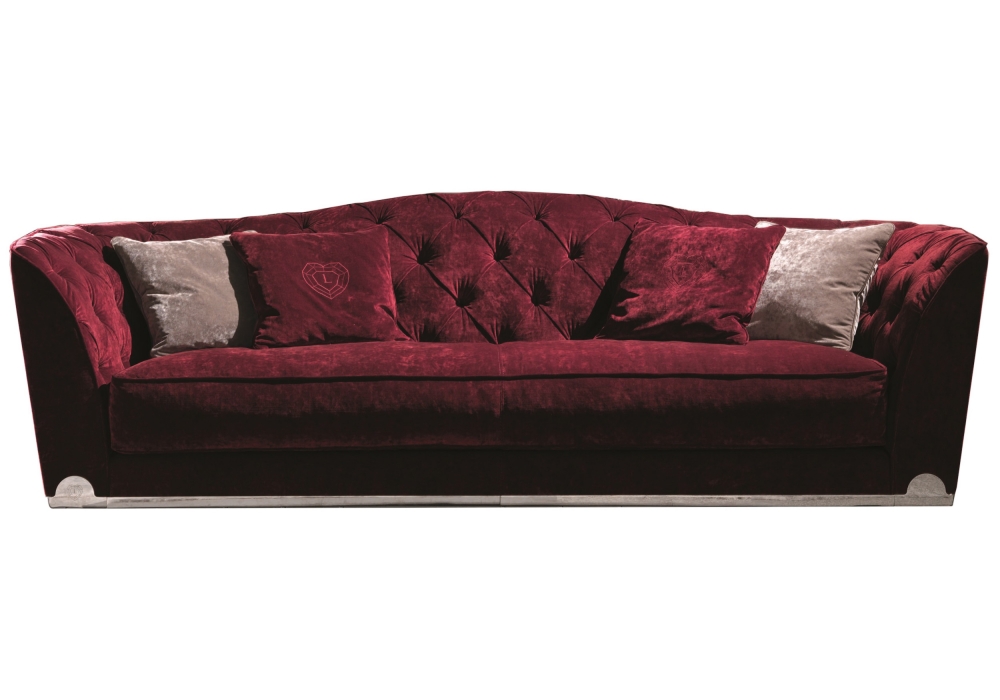 Grace firmato da Giuseppe Viganò per Longhi è un divano con struttura in legno, con cinghie elastiche, ricoperta in poliuretano espanso a quote differenziate. Cuscino di seduta in piuma d’oca sterilizzata con inserto in poliuretano espanso a quote differenziate e rinforzi in "Visco Soft", particolare imbottitura morbida e resistente nel tempo. Lo schienale interno è finito con lavorazione a "Capitonnè" con bottoni nello stesso colore del rivestimento o in alternativa in cristalli "Swarovski". Alla base del divano è collocata una bordatura in metallo, con logo laserato in varie finiture. Disponibile anche in 3 diverse dimensioni.