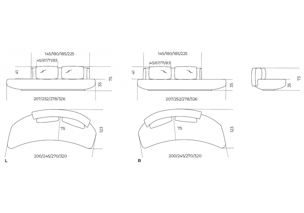 | Larghezza | 207 / 252 / 278 / 326 cm |