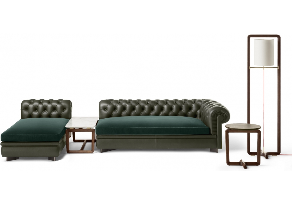 Chester Line firmato da Renzo Frau per Poltrona Frau è un divanop mudulare disponibile in un'ampia gamma di configurazioni. Struttura portante in faggio stagionato e rivestimento interamente in Pelle Frau o nell‘opzione che abbina pelle e tessuto. Una fila di chiodini rivestiti in pelle rifinisce il retro. La lavorazione capitonné del manto è eseguita interamente a mano.