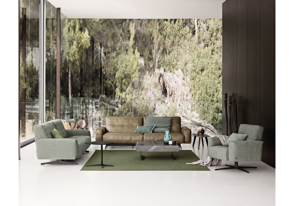 50 firmato da Rolf Benz è un sistema di sedute disponibile nela versione fissa e modulare che permette un'ampia gamma di configurazioni. Dispone di una struttura sedile particolarmente confortevole, basata su tradizionali tecniche artigianali, ulteriormente sviluppate. La cuscinatura posteriore si adatta alla seduta grazie a delle cavità ben posizionate nella schiuma dell'imbotttitura interna. Il meccanismo posteriore opzionale, disponibile, consente una regolazione graduale dalla seduta alla posizione rilassata. Grazie a una tecnologia speciale basata su una nuova molla a gas, è possibile spostare manualmente lo schienal con pochissimo sforzo. La parte posteriore si estende fino a 12 cm, offrendo un comfort ancora maggiore.