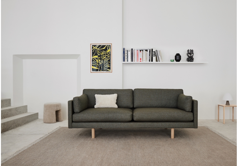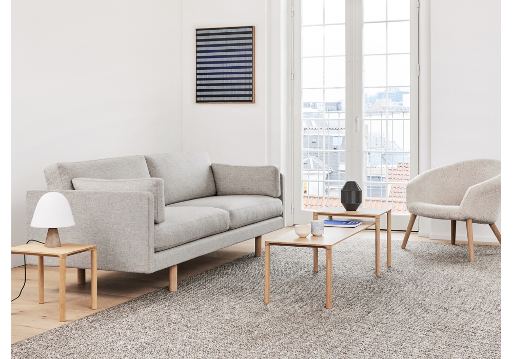 EJ 220 firmato da Fredericia è un divano con gambe in cromo opaco o rovere naturale e rivestimento disponibile in tessuto o pelle. Disponibile anche in 4 diversi modelli. Un pezzo fondamentale dell'intera collezione Erik Jørgensen.
