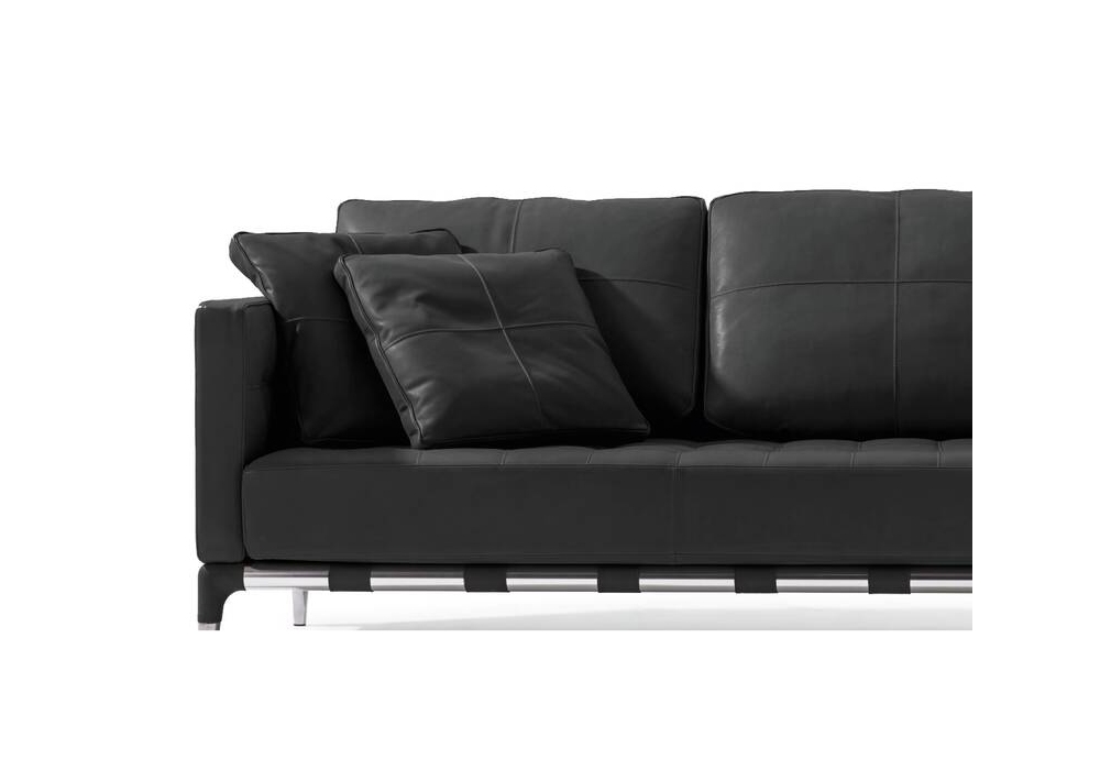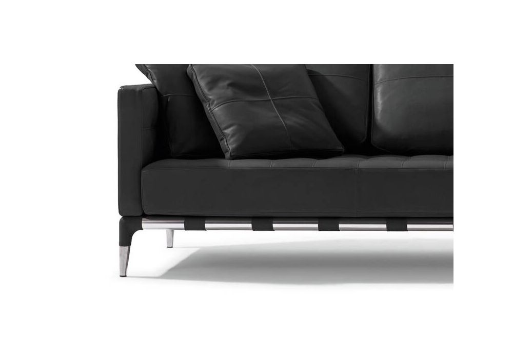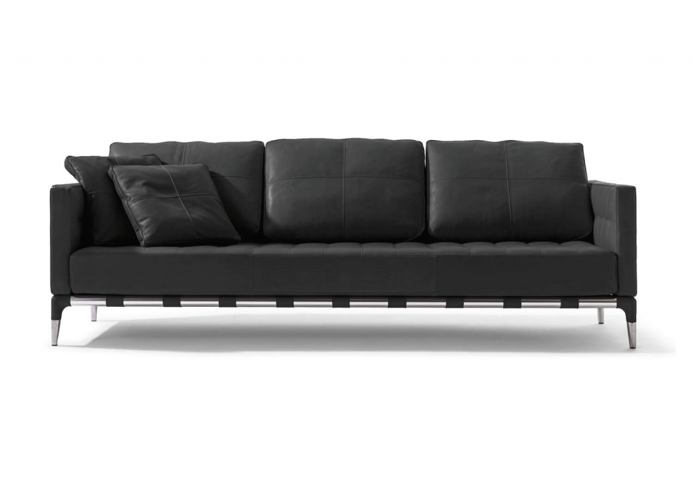 241 Privé firmato da Philippe Starck per Cassina è un divano realizzato con montante di sostegno del bracciolo orizzontale in alluminio brillantato, piedi in pressofusione ed estruso di alluminio e rivestimento in pelle con lavorazione capitonné sulla seduta, lo schienale e i braccioli.