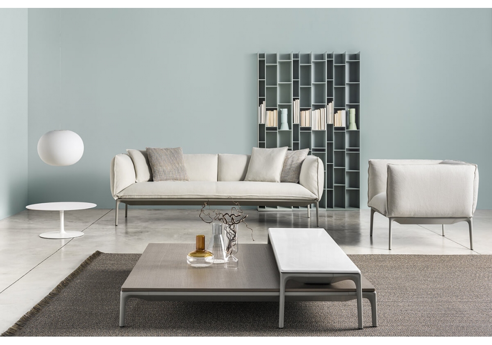 Yale X firmato da Jean Marie Massaud per MDF Italia è un divano disponibile in due differenti profondità di seduta e in due altezze di schienale. I cuscini di schienale, seduta e bracciolo sono imbottiti in poliuretano espanso, con rivestimento removibile in tessuto o pelle. La variante a schienale alto ha le cuciture a contrasto, disponibile nei colori bianco, grigio medio e antracite.