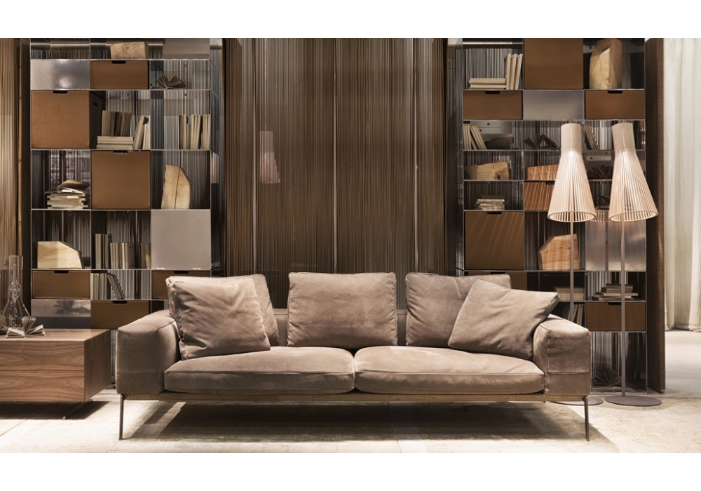 Lifesteel firmato da Antonio Citterio per Flexform è un divano con base in metallo, telaio seduta in metallo rivestito in cuoio, braccioli e schienale in poliuretano stampato con inserto in metallo, cuscini seduta e schienale in piuma. Lifesteel è un elegante divano sia fisso che versatile e flessibile nelle configurazioni componibili. Disponibile con rivestimento in tessuto o pelle.