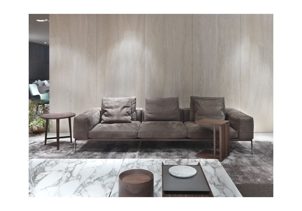 Lifesteel firmato da Antonio Citterio per Flexform è un divano con struttura in metallo, telaio seduta in metallo rivestito in cuoio, braccioli e schienale in poliuretano stampato con inserto in metallo, cuscini seduta e schienale in piuma. Lifesteel è un elegante divano sia fisso che versatile e flessibile nelle configurazioni componibili. Disponibile con rivestimento in tessuto o pelle.