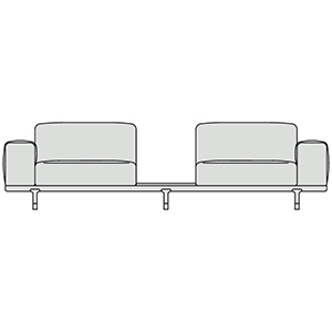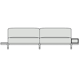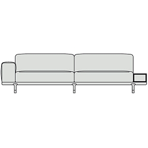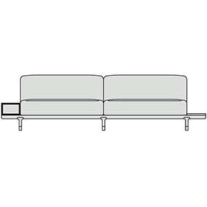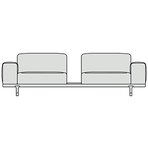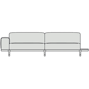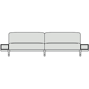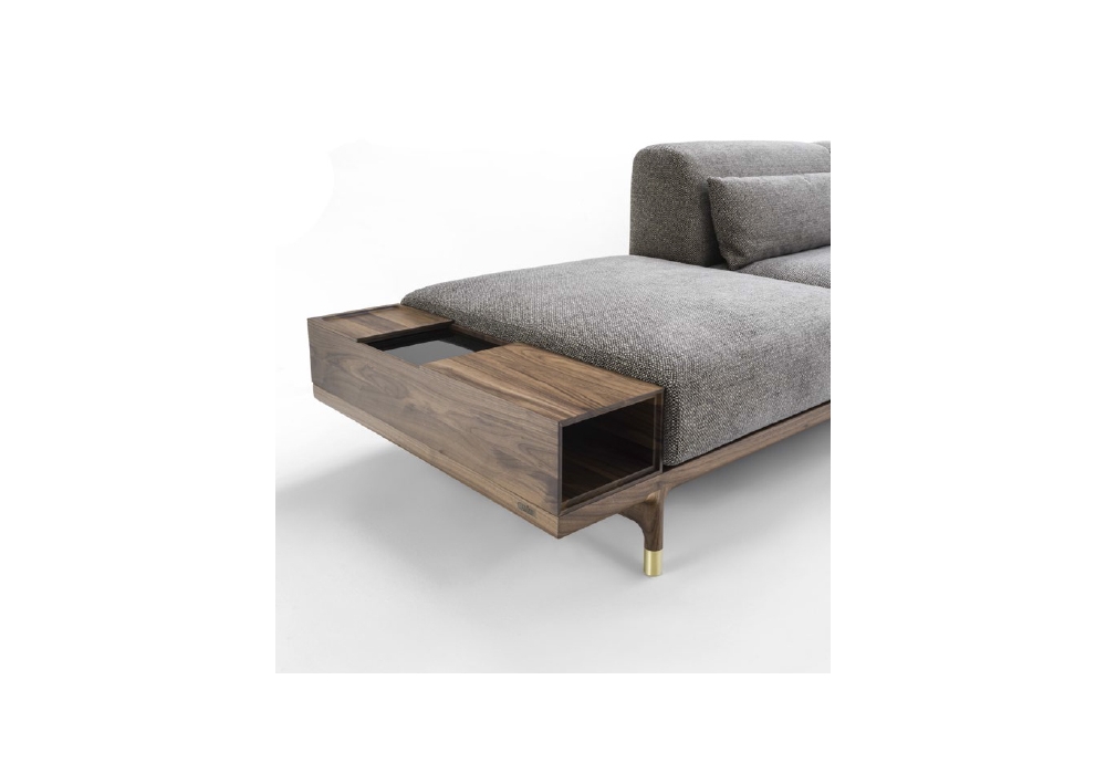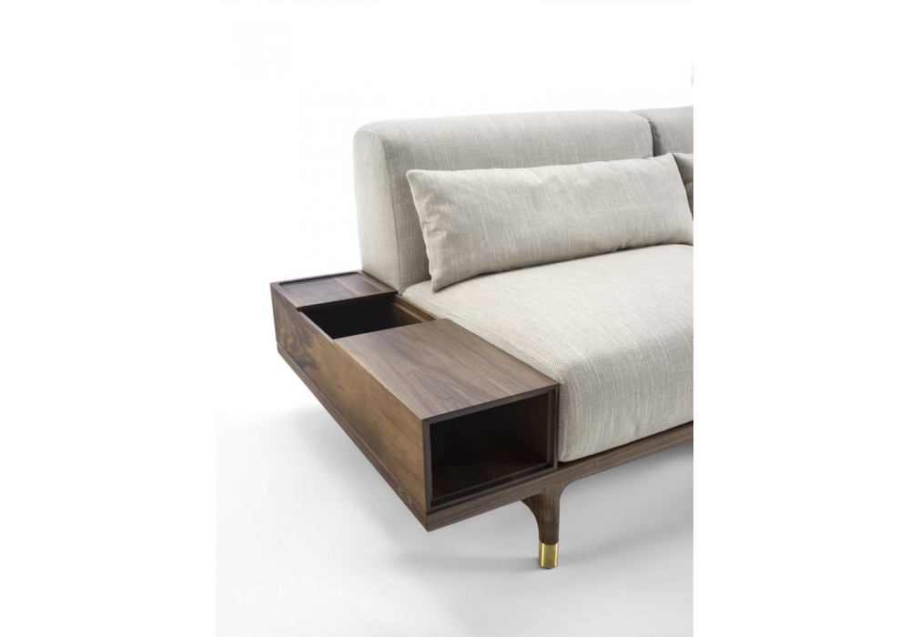 Argo firmato da D. Dolcini per Porada è un divano con struttura in noce canaletto, piedini in ottone, elementi in marmo e rivestimento in tessuto. Disponibile in differenti finiture.