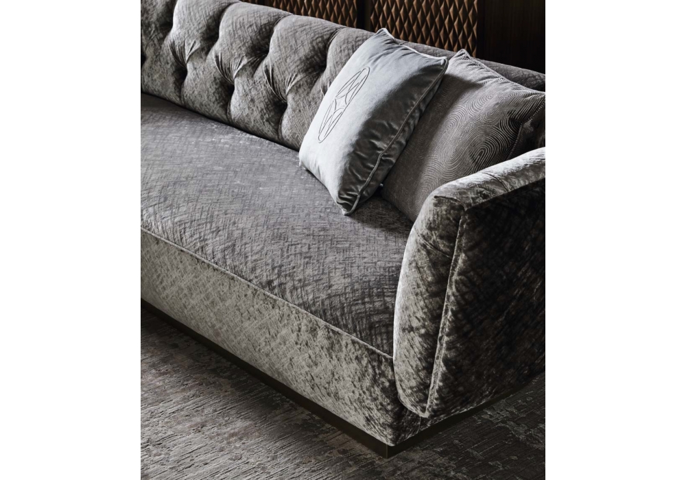Ivonne firmato da Castello Lagravinese Studio per Opera Contemporary è un divano dal fascino antico con base in metallo e rivestimento disponibile in tessuto o pelle. La sua caratteristica principale è la raffinata lavorazione capitonnè presente sullo schienale. Disponibile anche in 2 dimensioni: 2 o 3 posti.