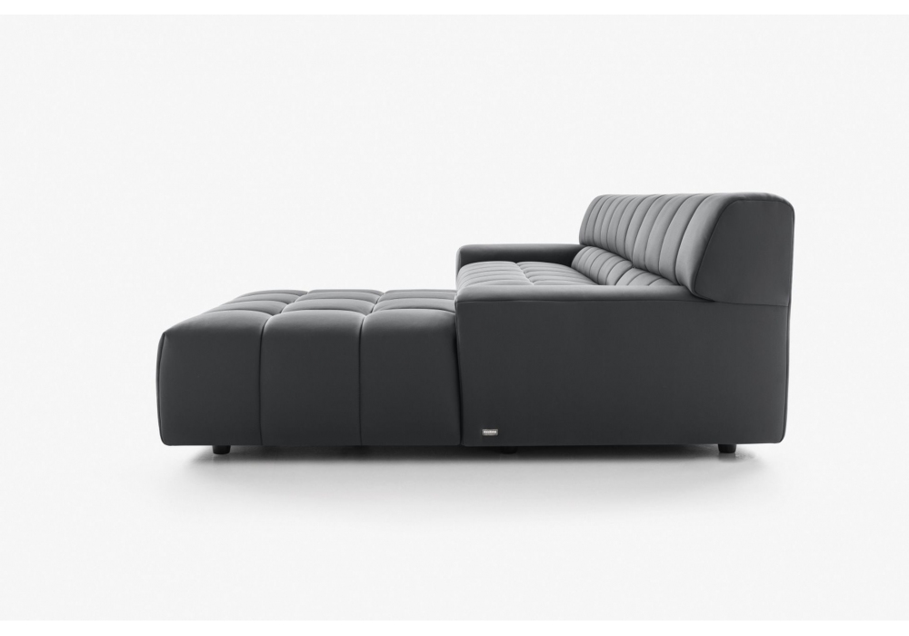 Bric firmato da Nicoline è un divano con struttura in legno e multistrato, molleggio seduta e schienale con cinghie elastiche, imbottituta con falda di Tecnoform. Rivestimento in tessuto o pelle, non sfoderabile. Piedi in materiale termoplastico nero.
